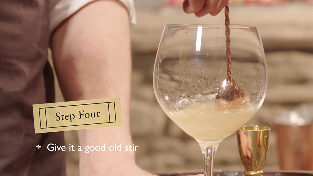 3. Stir gently to dissolve sugar. Be careful not to crack or chip the glass here.
