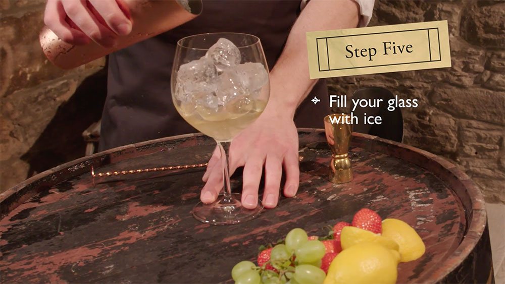 4. Add cubed ice (to within an inch or two of the lip of the glass)