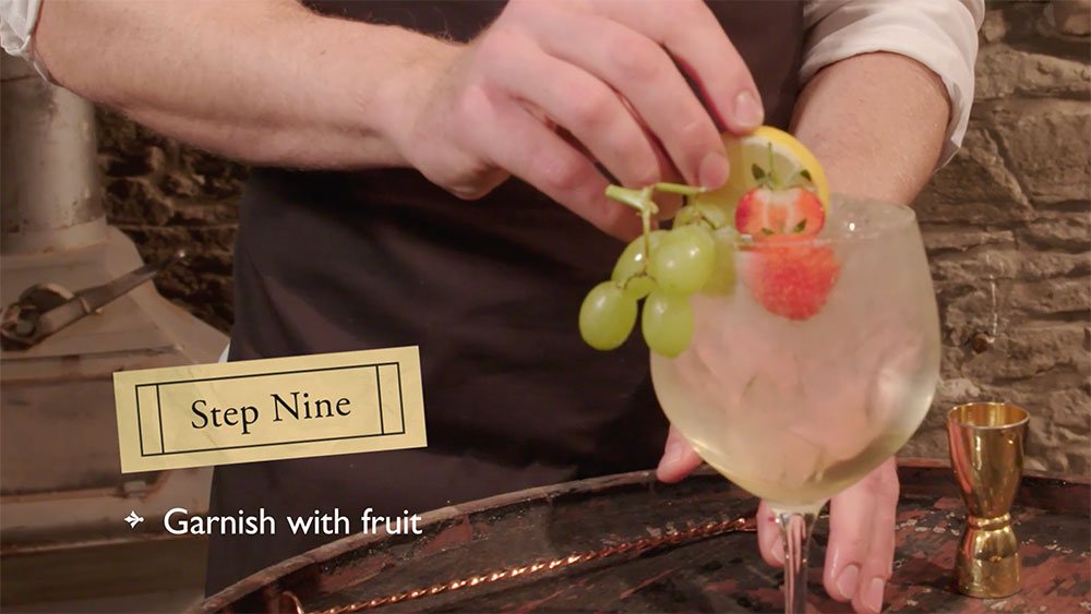7. Garnish with grapes, strawberries and your choice of fruit. The crushed ice should mean that these do not sink into the drink.
